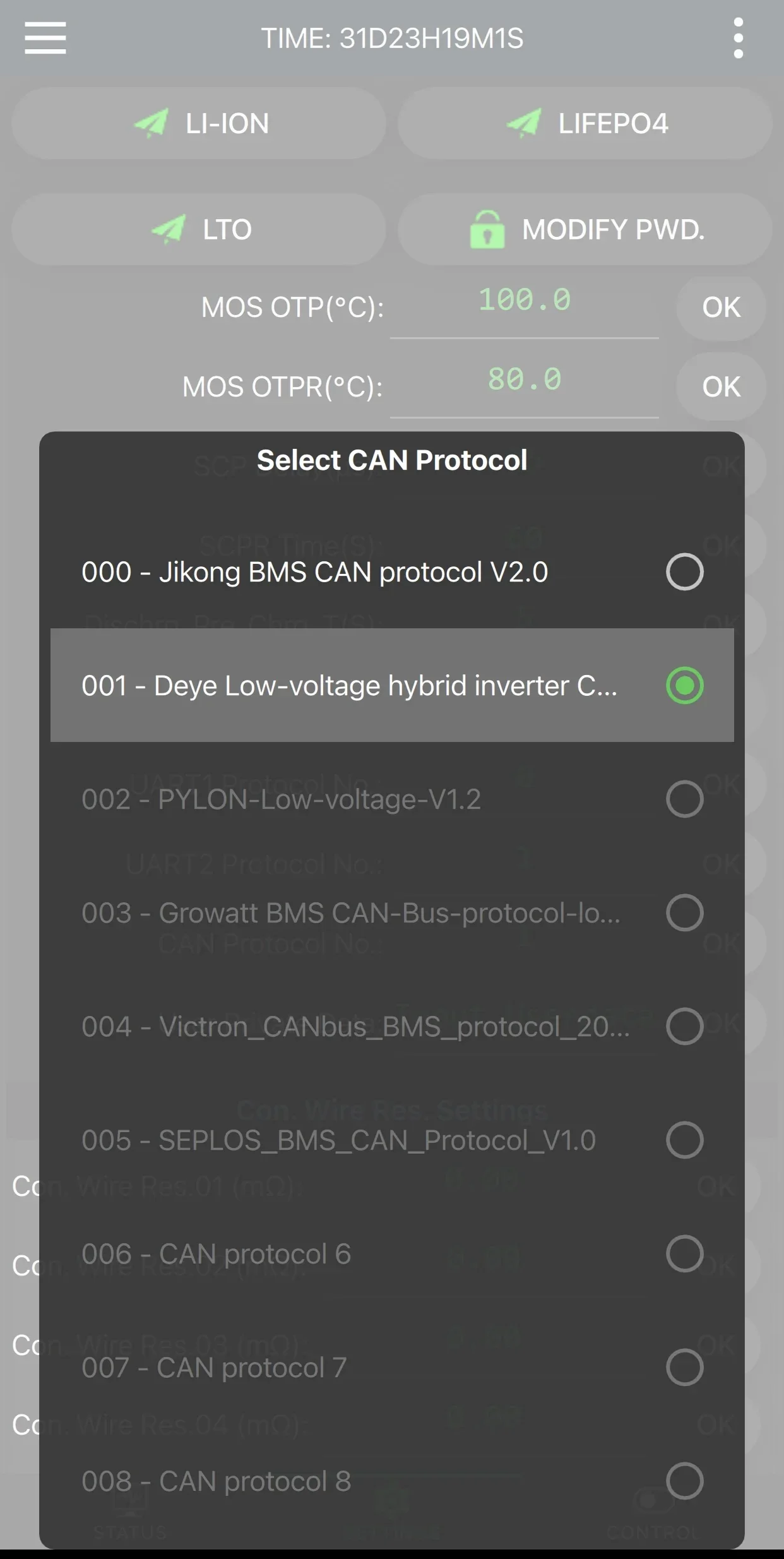 JKBMS Inverter BMS, APP interface